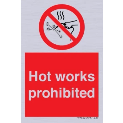 P039 : Hot works prohibited This sign is made from vinyl silver sticker A8 portrait Sign Text: Hot works prohibited