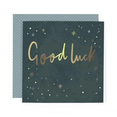LUXURY GOOD LUCK CARD - printed on top quality board with a fabulously foiled finish, this gorgeous card is a perfect send when you want to wish someone lots of luck, whether they're starting a new job, taking exams, starting uni or preparing for an interview CONTEMPORARY DESIGN - the bold foiled typography combined with a dramatic charcoal backdrop and starry accents create a design that truly shines! BLANK INSIDE - the words on the front cover read 'Good Luck'; the card is blank inside for your own personal message CARD MEASURES 6 x 6 INCHES - made from highest quality materials, with bespoke dotty envelope included, this upmarket card from the Hotchpotch Anise range is printed in the UK and fully recyclable GENUINE HOTCHPOTCH GREETINGS CARD - Hotchpotch London create award-winning collections of luxury cards proudly made in the UK since 1995