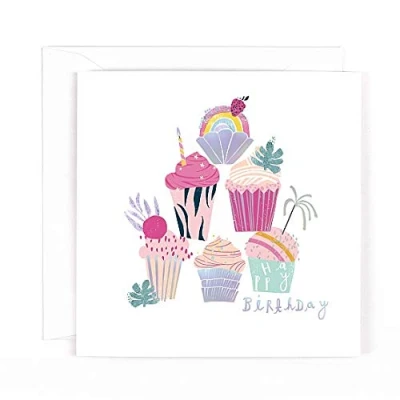 Hotchpotch Cupcake Mermaid Greetings Card Card measures approx 6 x 6" Cute stacked cupcake design with mermaid effect & caption 'Happy Birthday' Blank inside for your own message