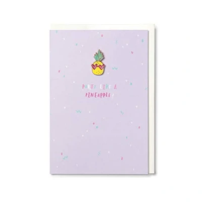 Hotchpotch 'Flair' Card with Pineapple pin badge Each card in the flair collection includes a real enamel pin badge with rose gold coloured plating and non-slip rubber backing. Caption on Front: "party like a pineapple" Envelope Included Blank inside so you can write your own message