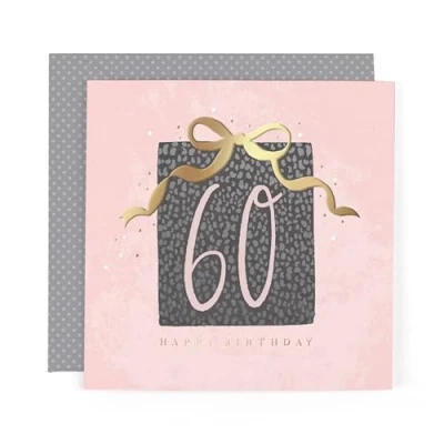 STUNNING 60TH BIRTHDAY CARD FOR FRIENDS OR FAMILY - say a heartfelt congrats with this vibrant card featuring chic gold foil embellishments and an eye-catching design; it's perfect for anyone celebrating their milestone 60th birthday STRIKING CONTEMPORARY DESIGN - the artwork shows a gift-wrapped present on a pale pink background with a shiny foiled bow and further gold foil touches; the card is blank inside so there's plenty of room to write birthday wishes! BESPOKE DOTTY ENVELOPE - this lovely card is printed on premium board and comes with a cute dotty envelope for convenient postage within the UK or abroad CARD MEASURES 6 x 6 INCHES (15 x 15 CMS) - made from recyclable FSC-certified board, with envelope included, this premium card from the Hotchpotch Anise range is sure to spread a little happiness! GENUINE HOTCHPOTCH GREETINGS CARD - Hotchpotch London create award-winning collections of luxury cards proudly made in the UK since 1995