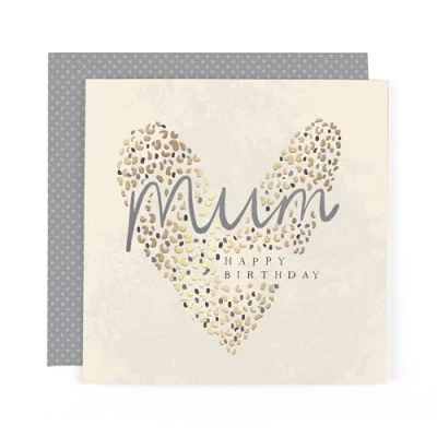STUNNING BIRTHDAY CARD FOR MUM - surprise your lovely mother with this vibrant card featuring chic gold foil lettering and an eye-catching design; it's perfect for a special mum as she celebrates her birthday CONTEMPORARY DESIGN WITH GOLD FOIL DETAIL - the caption 'Mum, Happy Birthday' is printed on a heart-shaped background richly embellished with gold foil detail; the card is blank inside so there's plenty of room to write your own thoughtful message! BESPOKE DOTTY ENVELOPE - this lovely card is printed on premium board and comes with a cute dotty envelope for convenient postage within the UK or abroad CARD MEASURES 6 x 6 INCHES (15 x 15 CMS) - made from recyclable FSC-certified board, with envelope included, this premium card from the Hotchpotch Anise range is sure to spread a little happiness! GENUINE HOTCHPOTCH GREETINGS CARD - Hotchpotch London create award-winning collections of luxury cards proudly made in the UK since 1995