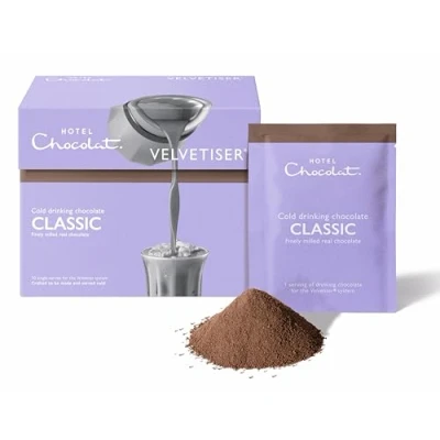 10 Classic cold drinking chocolate sachets Designed to work in harmony with the ALL-NEW Velvetiser system Crafted with finely milled real chocolate High-cacao milk chocolate paired with ingredients that sing when served cold Precisely portioned for optimal flavour and cacao depth Hotel Chocolat’s mantra is: ‘more cacao, less sugar’ and their three pillars are authenticity, originality and ethics