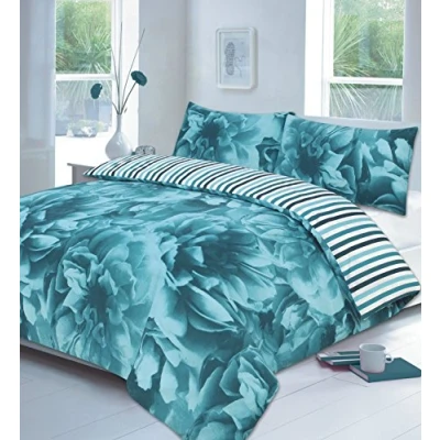 Size: King, 230 x 220 cm Feature: Excellent Quality Rose Teal Floral Design Bed Design Duvet set. High-Quality Fabric Colour: Teal, Material: 50% Polycotton and 50% Cotton. Created using unique finish to ensure softness and quality Machine Washable at 40ºc, Tumble Dry. Wash Dark Color Separately (Recommended)
