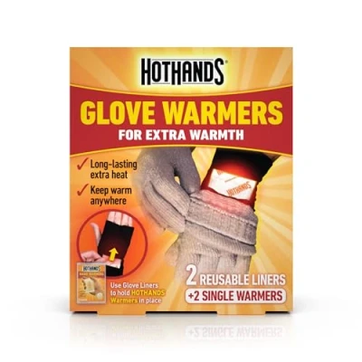 UNIQUE DESIGN - Thin and stretchy, these liners work together with gloves you already own to double warmth and comfort. CONVENIENT & PORTABLE - Small enough to pack into a backpack so you can enjoy your favorite cold weather activities like hunting, spectator sports, or a day on the slopes NATURAL LONG LASTING WARMTH - Each pair of HotHands hand warmers is made from natural ingredients and lasts up to 10 hours. PREMIUM INGREDIENTS Each HotHands hand warmer is made in the USA from domestic and imported materials and natural ingredients that do not harm the environment, such as iron, water, vermiculite, charcoal, polymer, and salt. Made in the USA
