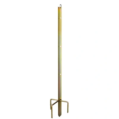 The Hotline Metal Reel Fixing Electric Fence Post is a heavy-duty solution designed for securely mounting multiple plastic fencing reels. Standing at 120cm (3ft 11in), this robust angle-steel post features dedicated positions for up to three reel brackets (https://www.electricfence-online.co.uk/reel-brackets-for-reels.html) (sold separately), making it ideal for multi-line temporary or semi-permanent fencing systems. For added stability, the post is equipped with a triple-pronged base that provides a firm and secure hold in the ground, even in challenging soil conditions. With 20cm of the post designed to sit below ground level, it ensures reliable anchoring and long-term durability. Perfect for professional users and smallholders alike, the Hotline Metal Reel Fixing Post offers strength, stability, and efficiency for managing multiple electric fence reels with ease. Key Features * Heavy-duty steel post for mounting up to 3 plastic reels * Total height: 120cm * 20cm below-ground spikes for secure fixing * Triple-pronged base for exceptional stability * Designed for use with reel brackets fitted into designated positions * Sold individually