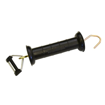 Hotline Premium Tape Gate Handle – with Tape Fitting Buckle This premium insulated gate handle is designed for strength, reliability, and ease of use in any electric fencing system using tape up to 40 mm. Built with a robust internal spring and high-grade insulating materials, it ensures safe operation while maintaining excellent electrical isolation. The integrated tape fitting buckle allows the tape to be securely connected and easily tensioned, providing a firm, dependable link that won’t loosen during use. Ideal for gateways where frequent access is required, this handle delivers durability, practicality, and smooth handling. Finished in black, it complements most fencing setups and offers long-lasting performance even in demanding outdoor conditions. Features * Premium-quality insulated gate handle with strong internal spring * Suitable for electric fence tape up to 40 mm * Built-in tape fitting buckle for secure tape attachment and tensioning * High insulation properties for safe and effective electric fence operation * Durable construction designed for frequent use * Provides quick, safe and convenient access to gateways * Colour: Black The handle is then attached to the gate using a Gate Handle Anchor (https://www.electricfence-online.co.uk/electric-fencing/electric-fence-gates/fence-gate-accessories/).