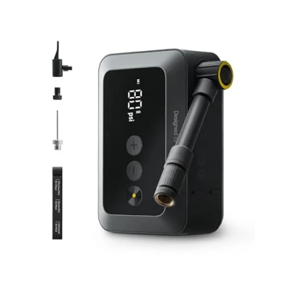 25s FAST INFLATE, GET BACK ON THE ROAD: Inflate a 700×23C road tyre from 80–100 PSI in just 25 seconds, or from flat (0–80 PSI) in around 60 seconds, helping you get moving again when time matters most. SMALL YET MIGHTY POWER: Designed with a palm-size form factor, this portable electric bike pump fits easily into a jersey pocket or saddle bag. With up to 150 PSI output, this hoto mini electric bike pump delivers steady airflow for high-pressure road tyres while also supporting lower-pressure mountain and BMX tyres. Powered by a 2000 mAh battery and a durable brushless motor, it can inflate up to 8 flat tyres or 18 low-pressure road tyres on a single charge — ideal for long rides, group rides and day-long cycling trips. AUTO SHUT-OFF & ACCURATE PRESSURE CONTROL: Built-in high-precision pressure sensor and smart chip automatically stop inflation once the target pressure is reached, helping prevent over-inflation and blowouts. The LED display shows real-time tyre pressure and inflation progress with ±1 PSI accuracy, ensuring safe and precise inflation every time. EASY TO USE WITH SMART DESIGN: Features an intuitive flick-to-start design for quick setup, while the 360° rotating hose allows easy valve connection without awkward angles. The memory function saves your last two pressure settings for faster inflation next time. NOTICE: The Presta valve adapter is a separate accessory, please connect the Presta air nozzle adapter to the tire first while using it for road bike WHAT'S IN THE BOX: 1 x HOTO Air Pump Pocket, 1 x American Air Valve, 1 x Presta Valve Adapter, 1 x Needle Valves Adapter, 1 x Quick-connection Valve Adapter, 1 x Type-C Cable, 1 x Soft Rubber Band. Please feel free to contact us if you have any problems during use