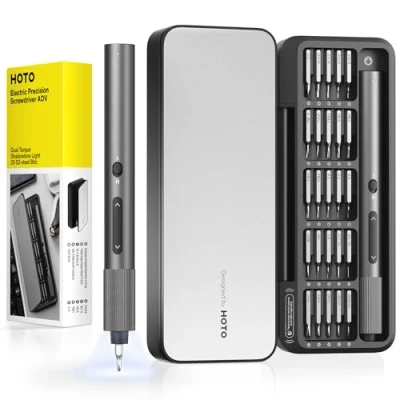 HOTO Electric Precision Screwdriver ADV, 25 in 1 Rechargeable Set with Light, Cordless Mini Power S2 Steel Bits, 2 Gear, Ideal for Phone/Glasses/Watches/Laptop