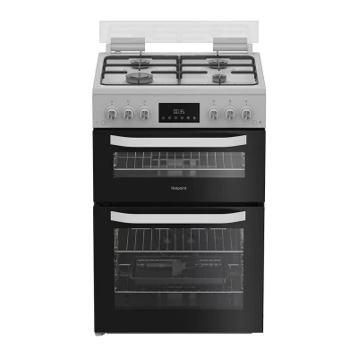 Cooking for a picky bunch? This Hotpoint cooker's double oven lets you whip up two totally different meals at once. The four burner gas hob is perfect for multitasking—whether you're boiling pasta, frying veggies, or just keeping everything warm. And thanks to its catalytic liners, the clean-up is super easy. They use the oven's heat to break down grease and fat, so you can just give them a quick wipe—no scrubbing, no harsh chemicals. Good to know - The second oven doubles as a full-width grill - perfect for bacon or a quick cheese toastie - Its sturdy matte enamel pan supports keep everything in place, so you can stir, flip and sizzle with confidence - Keep things tidy with its glass lid - it stops splatters and adds extra worktop space when closed - With a handy timer, you don't need to keep an eye on the clock while your meal is getting ready - Take a peek inside with the bright interior light that lets you see how things are coming along GAS INSTALLATION: This product requires installation by a qualified gas safe engineer, such as one of our Tech Experts (available in the UK only). ELECTRICAL INSTALLATION: This product can be plugged into a standard 13 Amp socket.