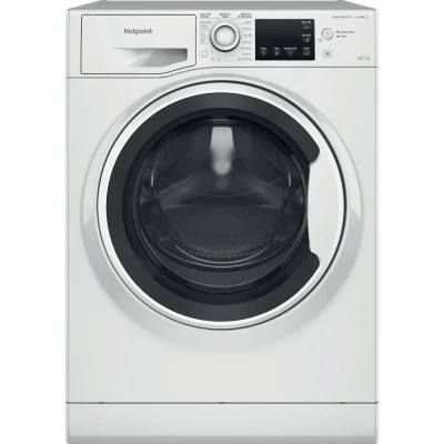 11+7 KG, 1600 rpm, Inverter Motor, Stop&Add, Start Delay, White Hotpoint NDB 11724 W UK. Loading type: Front-load, Appliance placement: Freestanding, Product colour: White. Rated capacity (washing & drying): 7 kg, Maximum spin speed: 1600 RPM, Spin-drying class: A. Cord length: 1.2 m. Energy efficiency class (washing): C, Energy efficiency class (washing & drying): E, Water consumption washing per cycle: 54 L. Depth: 605 mm, Width: 595 mm, Height: 850 mm This large 11+7KG capacity freestanding Hotpoint NDB 11724 W UK washer dryer combo with Anti-Stain technology removes stains without any need for pre-treatment, and achieves uniform drying, even on large items such as bedding and towels. It includes three Wash & Dry cycles for you to pick from to suit your daily needs, so even the largest of loads can be completed without any intervention. Design Water fill Cold Inverter technology Yes Drum volume 71 L Display type LCD Built-in display Yes Control type Buttons, Rotary, Touch Door colour White Door hinge Left Product colour White Appliance placement Freestanding Loading type Front-load Performance Noise level (spin) 80 dB Noise emission class C Anti-Crease function No Delayed start timer Yes Add garment (pause) function Yes Drying programs Cotton, Delicate/silk, Down wear/duvet, Hygiene/anti-allergy, Hygienic freshen-up, Steam, Synthetics, Wool Washing programs Cotton, Cottons 40°C, Cottons 60°C, Delicate/silk, Down wear/duvet, Hygiene air refresh, Hygiene/anti-allergy, Rinse & spin, Spin/drain, Steam, Synthetics, Wool Cycle time washing & drying 590 min Cycle time washing 240 min Rated capacity (washing) 11 kg Spin-drying class A Maximum spin speed 1600 RPM Rated capacity (washing & drying) 7 kg Ergonomics On/off button Yes Remaining time indication Yes Adjustable feet Yes Cord length 1.2 m Power Current 13 A AC input frequency 50 Hz AC input voltage 220-240 V Connected load 1850 W Power consumption (standby) 0.5 W Power consumption (off) 0.5 W Energy consumption per 100 cycles (washing & drying) 414 kWh Water consumption washing & drying per cycle 66 L Energy consumption washing & drying per cycle 0.414 kWh Energy consumption per 100 cycles (washing) 70 kWh Water consumption washing per cycle 54 L Energy consumption washing per cycle 0.701 kWh Energy efficiency scale A to G Energy efficiency class (washing & drying) E Energy efficiency class (washing) C Weight & dimensions Depth with door open 104.5 cm Depth with door closed 63.9 cm Weight 73.4 kg Height 850 mm Depth 605 mm Width 595 mm