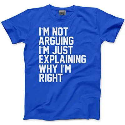 HotScamp Funny T Shirt I'm Not Arguing Just Explaining Why Right Men's Unisex Moody Teen Grumpy Old Blue Small