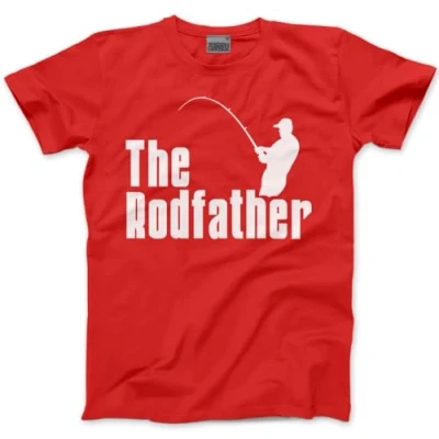 HotScamp The Rodfather Mens T Shirt Fishing Clothing for Men Gear Funny Dad Tshirt Red, L
