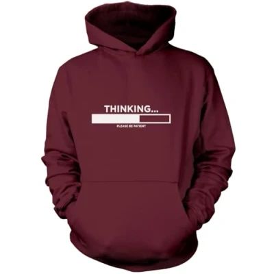 HotScamp Thinking Please Be Patient Unisex Hoodie Funny Slogan Sarcastic Teen Dad Joke S Maroon