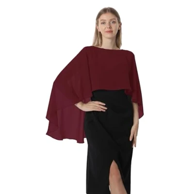 Hotshawl Capelets for women Chiffon Cape Shawls and Wraps Evening Dress Wedding Capes Cover Up, Burgundy, One Size