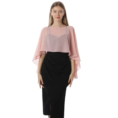 Hotshawl Capelets for women Chiffon Cape Shawls and Wraps Evening Dress Wedding Capes Cover Up, Rose Gold, One Size