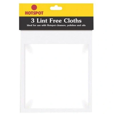 General description Hotspot Lint Free Cloths HOTLFCT003 are designed for applying and polishing products such as cleaners, polishes, and oils. They are gentle on surfaces and do not leave lint or fibers behind, making them ideal for achieving a clean finish. These cloths are reusable and machine washable, allowing for extended use. Technical specifications Type: Lint Free Cloths MPN: HOTLFCT003 EAN: 5015277000177 Compatibility and accessories Suitable for use with cleaners, polishes, oils, and other surface treatments. Installation No installation required. Simply use the cloths to apply or polish products on various surfaces. Usage Use the lint-free cloths to evenly apply cleaning or polishing products. Wash the cloths after use to maintain their effectiveness and reusability. Other information