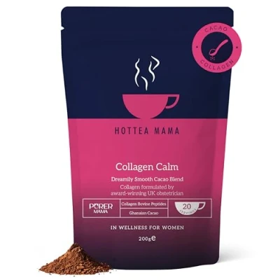 PERFECT COMBINATION: Our delicious hot chocolate contains a special form of hydrolysed bovine collagen that has been broken down into smaller peptides to make the collagen easier for the body to absorb and utilise. Enjoy your everyday ritual with the added health benefits SKIN, HAIR & NAILS: Making up 70-80% of our skin, collagen has become well known for its ability to improve elasticity and tone, giving skin a hydrated look. Collagen also plays an important role in helping grow, strengthen and protect nails & hair GUT & PELVIC FLOOR: Collagen plays a significant role in supporting gut health by repairing the gut lining, reducing inflammation and improving digestion. It also provides support and elasticity to the pelvic floor organs, contributing to tissue strength DESIGNED BY UK LEADING OBSTETRITION: Our collagen was thoughtfully designed with women in mind to include Vitamin C & D, which helps with absorption and is pregnancy, breastfeeding and menopause friendly MULTI-AWARD WINNING: HotTea Mama has proudly claimed numerous awards for our range of teas and blends, including an Excellence Award at the The Nourish Awards 2024 CREATED BY WOMEN FOR WOMEN: HotTea Mama, creates thoughtful, supportive solutions for your journey through life. Combining flavour and function, our organic teas, coffees and blends are created by Tea Scientist, Bethan, to support women - one cup at a time