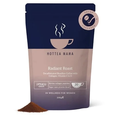HOTTEA MAMA Radiant Roast Decaffeinated Collagen Coffee 200g Ground Award Winning Brand For Healthy Skin, Hair, Bones & Joints 20 Servings