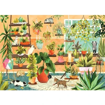 Be purr-fectly challenged for hours by this adorable puzzle! Cute cats pounce, play, and sleep amid an array of succulents and tropical plants in this sun-filled house. 1000 precision-cut pieces fit snugly. Linen-textured surface reduces glare. Durable premium blue puzzle board. High-resolution puzzle image features rich, sharp, vibrant color. Full-sized, full-color poster of finished puzzle included for your reference. Hours of fun! Finished puzzle measures 28'' wide x 20'' high. Sturdy puzzle box measures 9-1/4'' square x 2'' deep. Warning: Choking hazard, small parts. Not for children under 3 years., Manufacturer: Peter Pauper Press