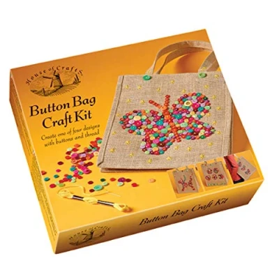 QUALITY House of Crafts have been manufacturing high quality, boxed craft kits for years since 1991. With emphasis on crafts as gifts, they offer a wide range of products suitable for all ages, and they add exciting new kits to the range each year CONTENTS Kit contains all the materials required including jute bag 27x30x17cm, selection of buttons, stranded embroidery thread, tapestry needle, a design sheet, and a handy set of instructions in English, French and Italian IDEAL Offers an introduction to a particular craft whether you are a beginner or have previous experience of the craft, ideal for older kids, and adults to create a unique decorative button jute bag UK MADE House of Crafts products are designed and made in the UK. Ideal for beginners and experienced crafters alike, for older children and adults.Perfect DIY crafting supplies for getting creative and making a unique button tote bag GIFT Button bag craft kit makes the perfect present for loved ones, and will be loved by any craft enthusiast or hobbyist. Buttons have been used for centuries for decoration and fashion. Ideal for adults and the older kid