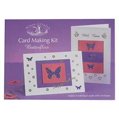 House Of Crafts Card Making Butterflies Mini Kit, Single Craft Kit Set, Multicoloured, Includes 6 Cards (158 x 110mm) With Envelopes, Peel Off Motifs & Greetings, Coloured Papers, PVA Glue, Patterns