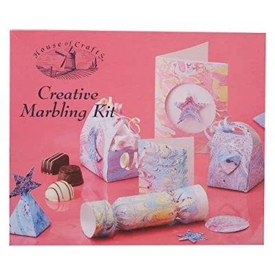 QUALITY House of Crafts have been manufacturing high quality, boxed craft kits for years since 1991. With emphasis on crafts as gifts, they offer a wide range of products suitable for all ages, and they add exciting new kits to the range each year KIT Contains all the materials including marbling ink x3 colours, marbling tray, combing tool, plain card x20 sheets, greeting cards, trinket box blank, sachet of size, stencil, glue pen, and a set of instructions in English, French, and Italian IDEAL Offers an introduction to a particular craft whether you are a beginner or have previous experience of the craft, ideal for older kids, and adults UK MADE House of Crafts products are designed and made in the UK. Ideal for beginners and experienced hobby crafters alike, for older children and adults.Perfect crafting supplies GIFT Marbling set makes the perfect present for loved ones, and will be loved by any craft enthusiast or hobbyist. Make a unique handmade decoration for your home.Great for Christmas and Birthday. Ideal for adults and older children