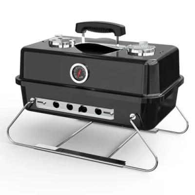 House of Home Portable Charcoal BBQ Grill Compact Folding Barbecue with Thermometer, Ash Catcher, Air Vents & Enamel Coated Rack Perfect For Camping Garden Cooking (Black)