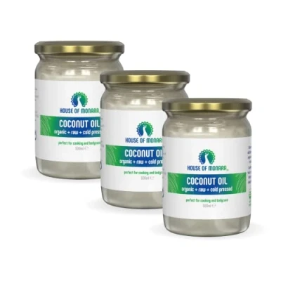 House of Monara Organic Extra Virgin Coconut Oil 500ml x3 packs Pure, Raw and Cold Pressed, white
