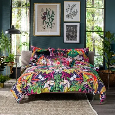 This House of Norris Birds Of Paradise Double Duvet Set is made from 100% cotton.This double duvet set includes a duvet cover, a pair of pillowcases and a matching cushion cover. The bedding features a bright and vibrant design on both sides featuring colourful birds and butterflies and is finished with a piped edge on both the duvet cover and pillowcases.The 200 thread count cotton provides comfort and warmth when needed.Machine washable at 40°C following the manufacturers instructions and is suitable for tumble drying.Size: 200 x 200cm.