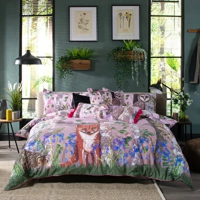 This House of Norris The Forest At Twilight King Duvet Set is made from 100% cotton.This duvet set includes a duvet cover, a pair of pillowcases and a matching cushion cover. The bedding features a fox and hedgehog amongst bluebells with a owl overlooking from the trees. Set on a pink background with a darker pink piped edge around the duvet cover and pillowcases.The 200 thread count cotton provides comfort and warmth when needed.Machine washable at 40°C following the manufacturers instructions and is suitable for tumble drying.Size: 230 x 220cm.