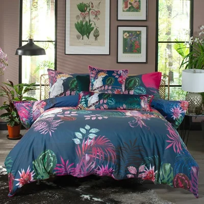 This House of Norris The Parrot and the Cockatoo Super King Duvet Set is made from 100% cotton.This duvet set includes a duvet cover, a pair of pillowcases and a matching cushion cover. The bedding features parrots and cockatoos on a stunning rich blue background with colourful flora. The duvet cover and pillowcase have a matching dark pink piped edge.The 200 thread count cotton provides comfort and warmth when needed.Machine washable at 40°C following the manufacturers instructions and is suitable for tumble drying.Size: 260 x 220cm.
