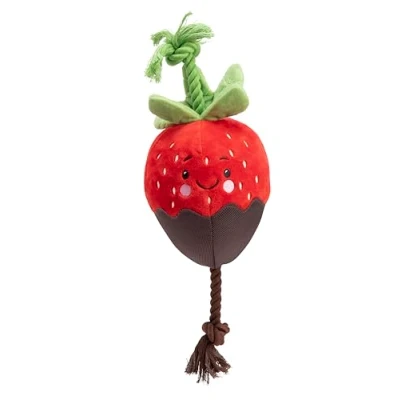 JoybuyThe House of Paws Chocolate Dipped Strawberry Plush Toy is a multi-sensory dog toy featuring rope pulls, crinkle leaves, and a built-in squeaker in a cute strawberry design, crafted from soft plush for safe, interactive play. Always supervise use and replace if damaged for your dog’s safety.