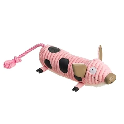 House of Paws Pig Jumbo Cord Dog Toy Soft Plush with Squeaker