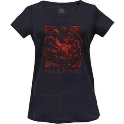 House Of the Dragon Fire and Blood WOHOFTDTS011 Women's T-Shirt, Navy, S 100% official licensed products Machine wash 30° inside out