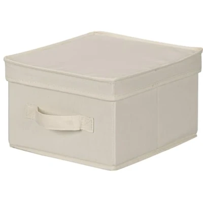 Household Essentials 111 Storage Box with Lid and Handle Natural Beige Canvas Medium,Natural Trim
