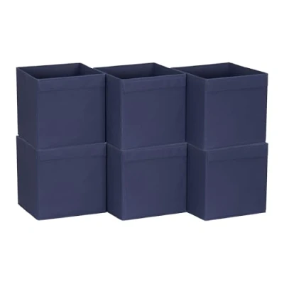 Household Essentials 87 1 Foldable Fabric Storage Bins Set of 6 Cubby Cubes with Flap Handle, Navy Blue