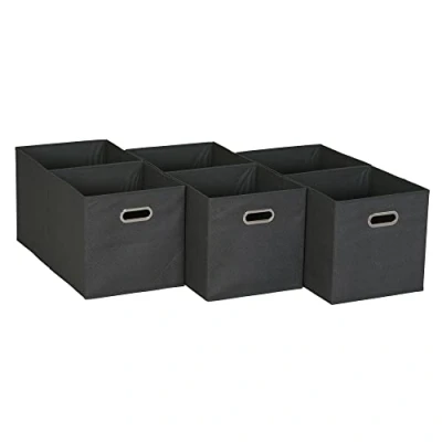 Household Essentials Black Cobblestone Set of 6 Open Fabric Cube Storage Bins, 11 x
