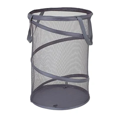 Household Essentials Pop Laundry Hamper, Springform Steel Frame, Mesh Lining for Air Circulation, Large Capacity, Easy Set Up, Compact Storage, Charcoal, Polyester Alloy, Grey