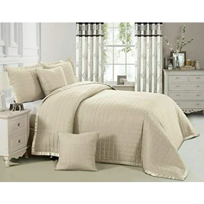Householdfurnishing Box Stitching Bedspread Bed Throw Comforter Soft and Smooth With Pillow Shams (Beige, SuperKing)