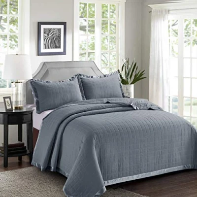 Householdfurnishing Box Stitching Bedspread Bed Throw Comforter Soft and Smooth With Pillow Shams (Grey, Super King)