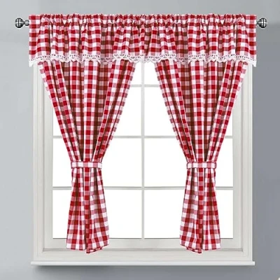 Householdfurnishing Embroidered Kitchen Window Pair Curtains Set Rod Pocket with Attached Valance & Tiebacks (W 48 x L 36 Inch, Red)