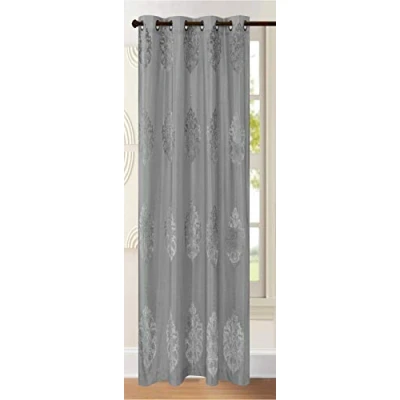 householdfurnishing Eyelet Ring Top Velour Voile Panel Damask Design (Grey, 55 X 90)