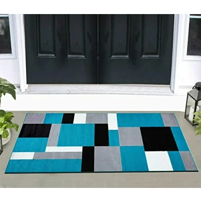 householdfurnishing Modern Area Rugs Door Mats Extra Large Beautiful Living Room Carpet Bedroom Runner Hallway (60 x 110 cm, Teal Black)