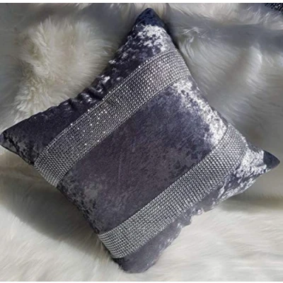 Householdfurnishing New Diamante Crushed Velvet Sparkle Bling Cushion Cover All Beautiful Colours (Silver, 45 x cm)