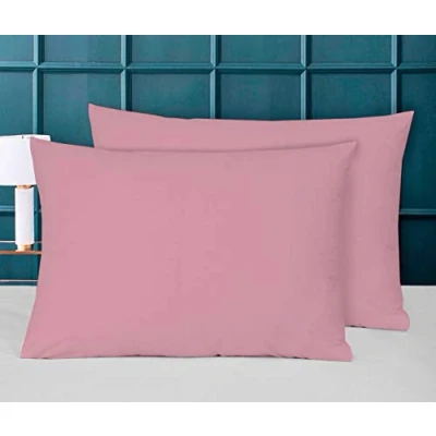 Householdfurnishing Pair of Pillow Case Finest Poly Cotton Plain Dyed Housewife Cover (Pink, 19" x 29")