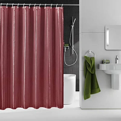 Householdfurnishing Polyester Striped Pattern modern design bathroom shower curtain with rings (180x180cm, Burgundy)