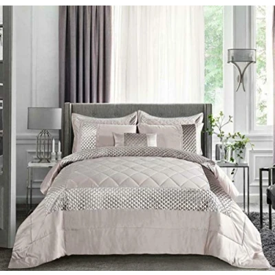 Householdfurnishing Sequin Pattern 3 Piece Quilted Luxury Bed Set Comforter With Crushed Velvet (Atlnt/Mink, Double)