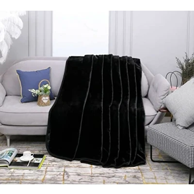Householdfurnishing Small Large Faux Fur Silk Mink Throw Warm Blanket Sofa Bed Cover (Black, Large)