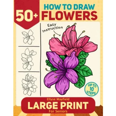 How To Draw 50+ Flowers For Seniors Large Print: Book Adults, With Easy Step by Instructions Beautiful Including Roses, Tulips, Carnations And More